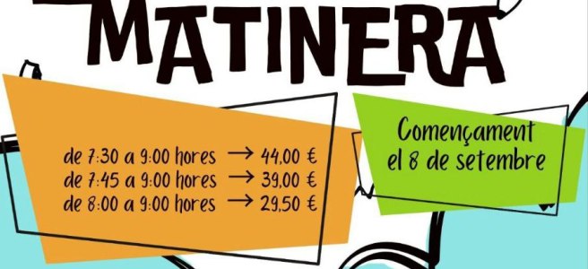 Ya puedes realizar la inscripción a la Escuela Matinera para el curso 2025-2026. Como siempre, podrás optar por abono mensual o bonos de 10 sesiones y diferentes horarios de acceso. Pincha aquí para realizar la inscripción online (código de centro V22Z6)