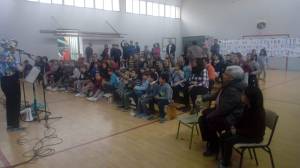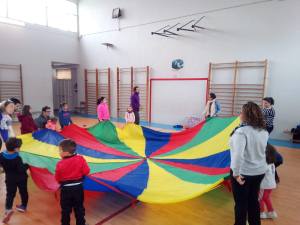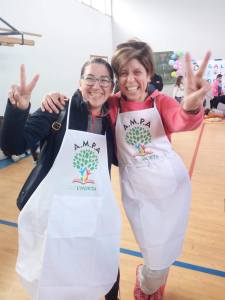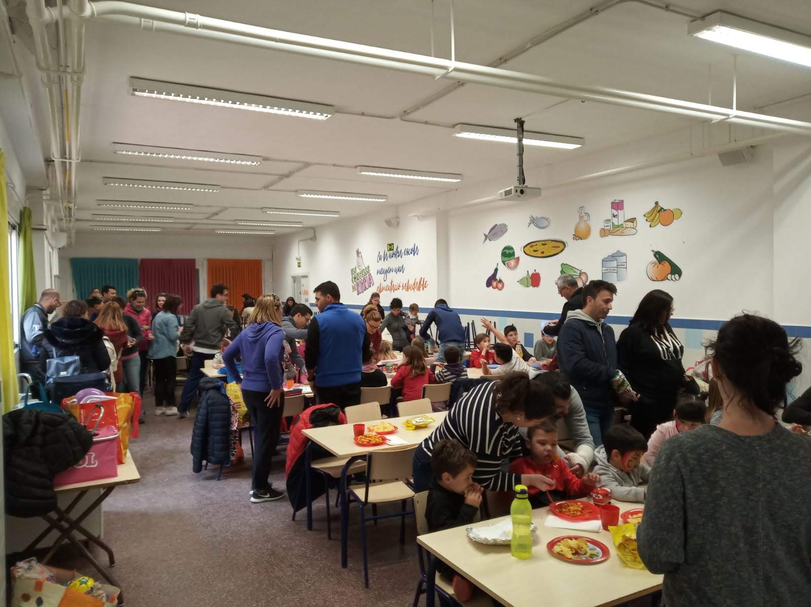 Debido a la lluvia, el cole nos prestó el comedor y pudimos realizar la comida familiar a cobijo, lo que provocó un agradable ambiente.