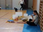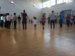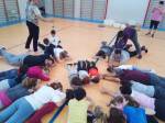 Ha sido una fantástica experiencia donde aprendimos a relajar partes de nuestro cuerpo que normalmente olvidamos (cara, lengua…) y coordinar movimientos al ritmo de música de cuencos tibetanos, palos de lluvia y otros instrumentos de viento y percusión. Realizamos coreografías en pareja con aire de por medio y otras con contacto. Y, sobre todo, aprendimos a saber cómo sentir y tocar a nuestros hijos e hijas, lo que nos sirve para enseñarles a difenciar del contacto físico saludable con sus iguales como método de prevención para situaciones futuras muy candentes en la actualidad.