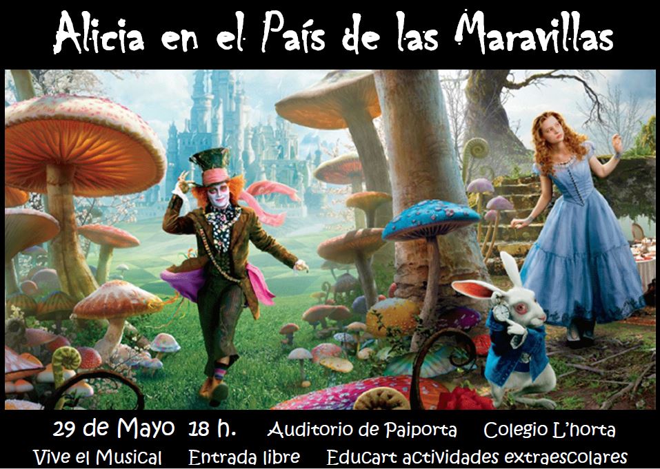 Como todos los años, finalizando el curso escolar, las y los artistas de nuestro cole que imparten la extraescolar de Viva el Musical con Educart Valencia nos deleitan con la representación de una obra musical. Este año la obra elegida es «Alicia en el País de las Maravillas».