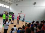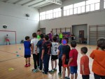 Las niñas y niños empezaron entrenando en una sesión dirigida por Guillem, el monitor de la actividad de fútbol sala, y Ricardo, a los que se sumaban Márquez y Cecilio haciendo travesuras con el balón.