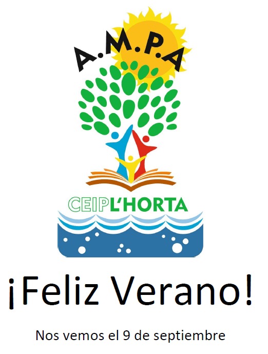 Todas y todos los que formamos AMPA os deseamos un feliz verano y que podáis disfrutar de la familia. Recargad las pilas ya que el curso que viene vendremos con más actividades que esperamos sean de vuestro agrado (empezaremos el 21 de septiembre con la Fiesta de Bienvenida, donde las empresas de extraescolares nos mostrarán mediante talleres lo que impartirán durante el curso).