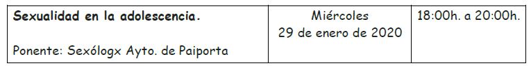 - 29/01/2020 18:00 h Sexualidad en la adolescencia