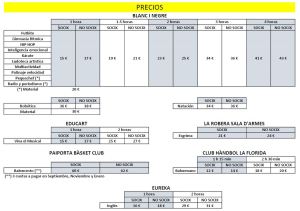 - Hip hop, Kárate, Robótica, Patinaje, Futbito, Gimnasia rítmica, Pequechef, Radio, Inteligencia emocional, Ludoteca artística y Multiactividad
