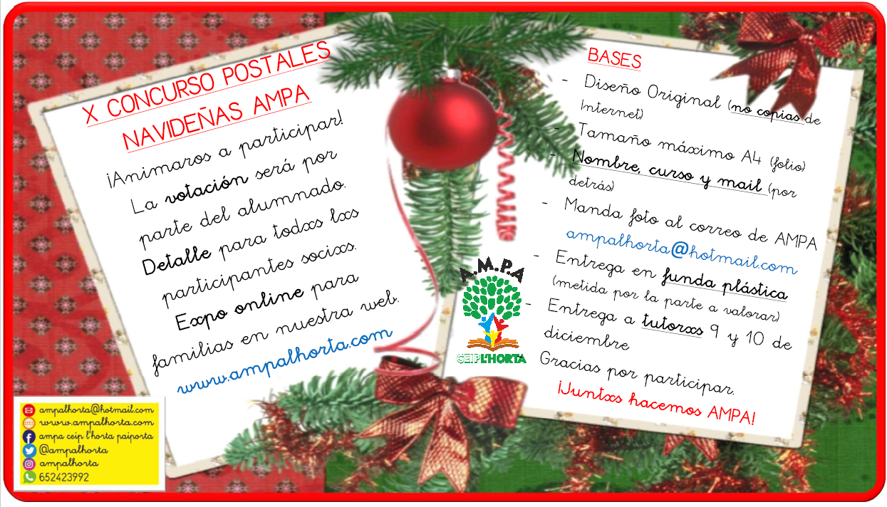 - Desde AMPA felicitaremos a todas las socias y socios con la imagen de la postal ganadora