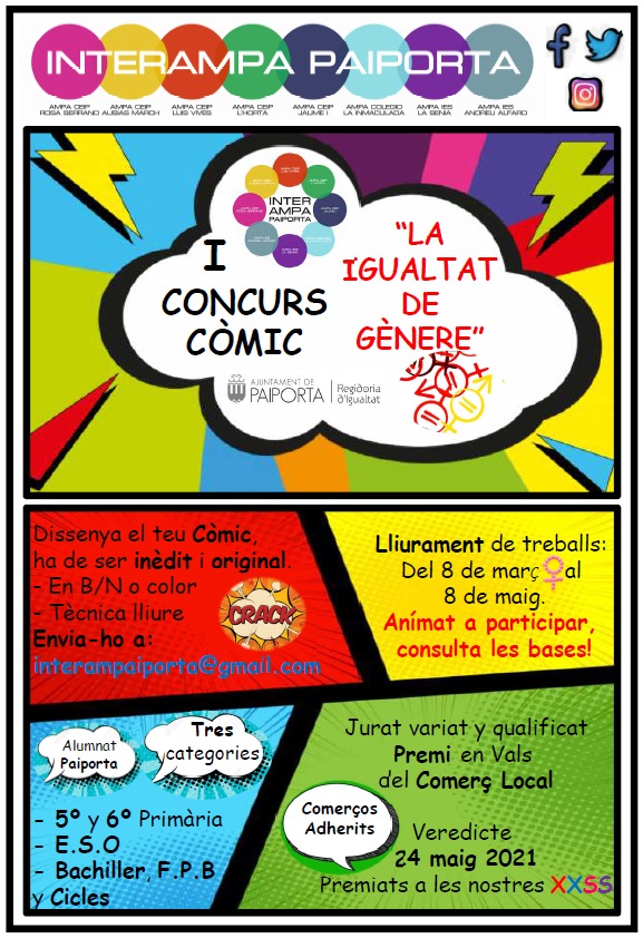 InterAMPA y la Regidoria d’Igualtat convocan el 1er Concurso de Cómic con la temática «La igualdad de género» para conmemorar el 8 de marzo, el Día Internacional de la Mujer.