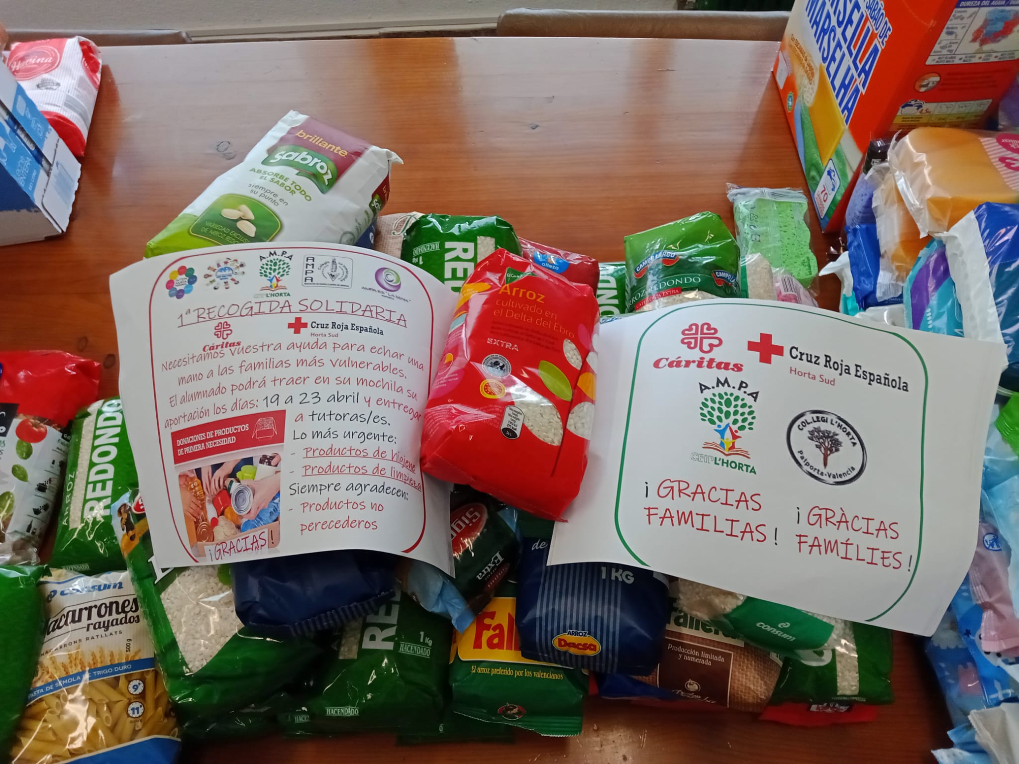 Durante la semana pasada, las familias de nuestro cole han llenado las aulas de productos de limpieza y comida no perecedera durante la 1ª Recogida Solidaria que hemos organizado desde las AMPA del IES La Sénia, La Inmaculada Lluís Vives, Rosa Serrano y L’Horta.