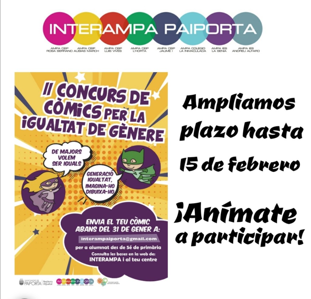 Por segundo año, InterAMPA, junto a la Regidoria de Igualtat del Ayuntamiento de Paiporta, convoca el Concurso de còmics «Per la igualtat de génere».