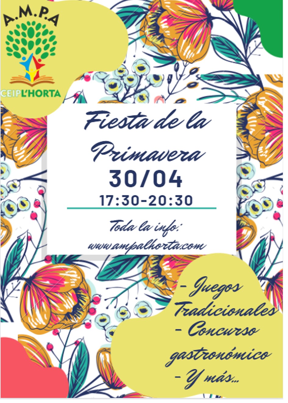 Os esperamos el sábado 30 de abril a partir de las 17:30 h en el cole, por la entrada de la c/ Catarroja.