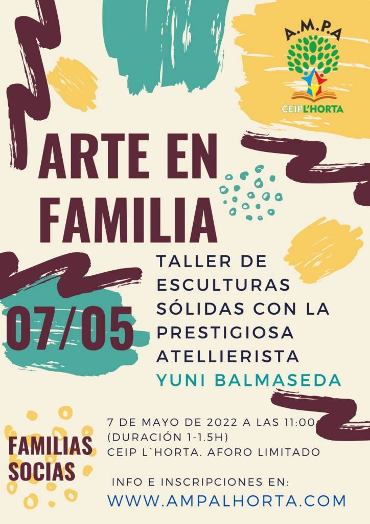 Yuni nos visita por 2ª vez el próximo sábado 7 de mayo, a las 11 h, en el cole, con su nueva propuesta de Arte en familiaTaller de esculturas sólidas.