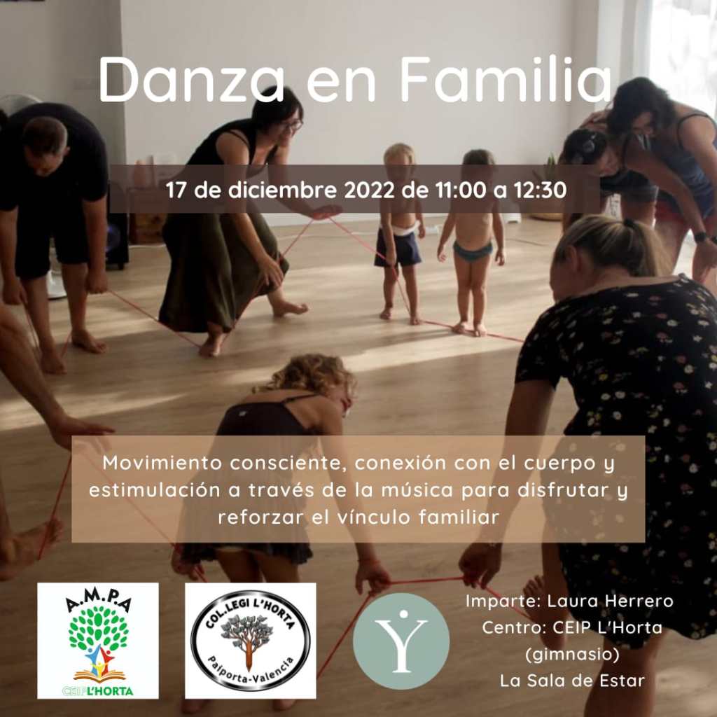 El sábado 17 de diciembre, a las 11 h, os esperamos para disfrutar en familia del taller de danza con Laura Herrero, de La Sala de Estar de Picanya. Con el movimiento consciente, la conexión con el cuerpo y la estimulación con la música, reforzaremos el vínculo familiar. ¡No te lo pierdas!