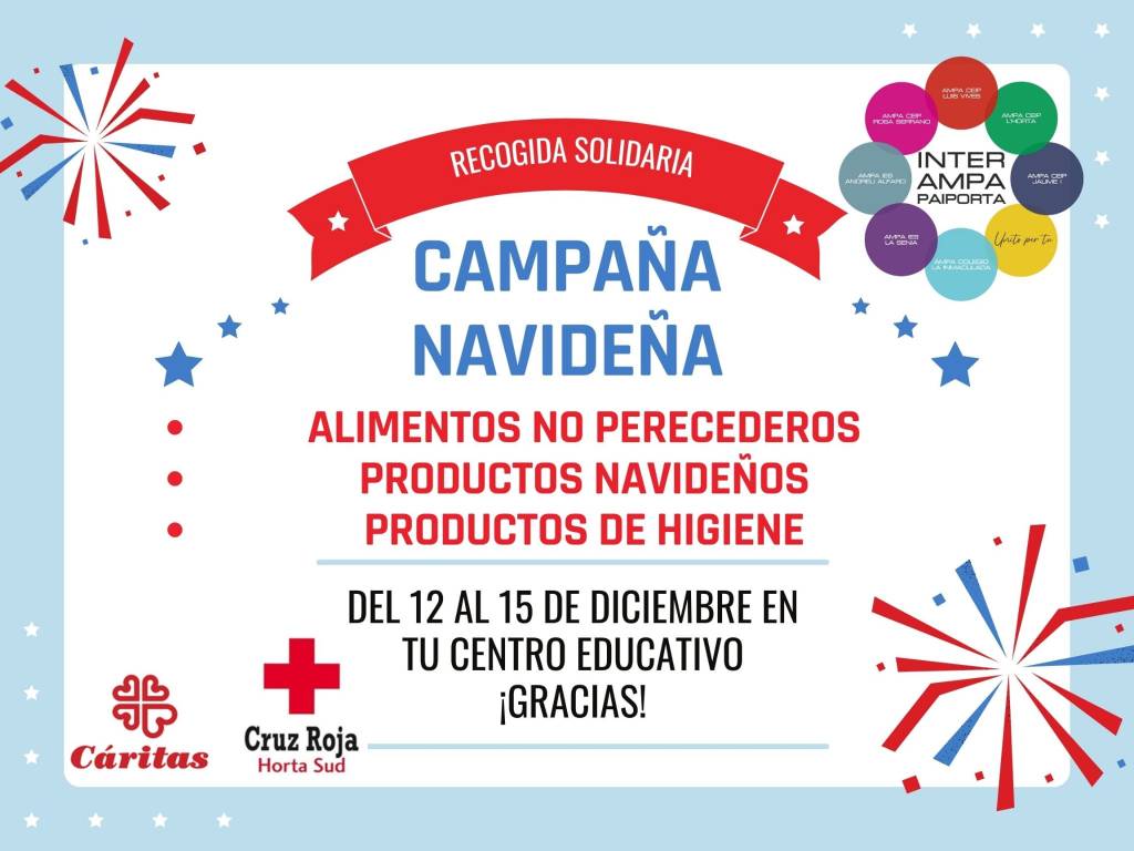 Un año más, InterAMPA promueve la solidaridad entre la comunidad educativa de Paiporta. Lanzamos la campaña solidaria navideña de recogida de: