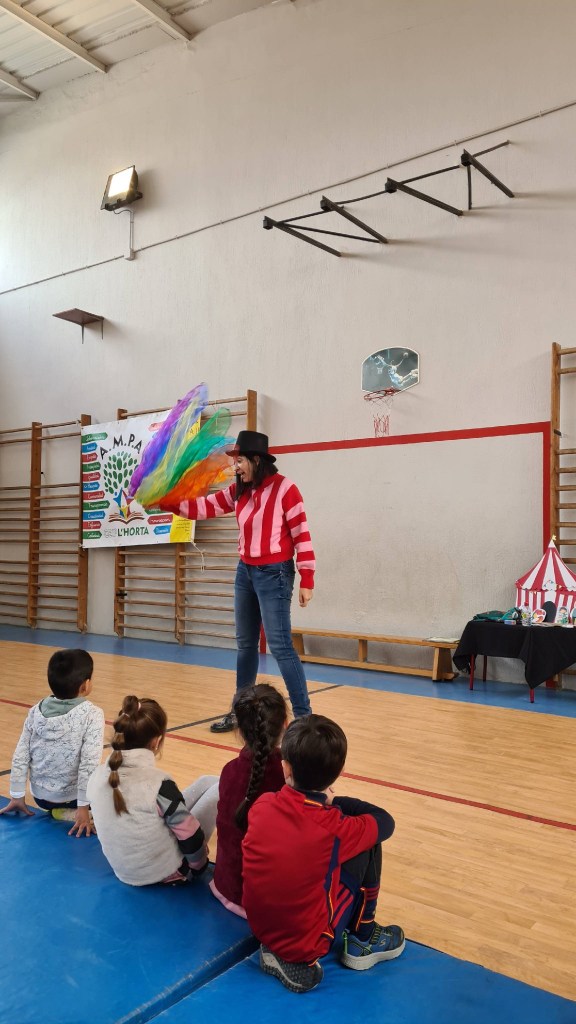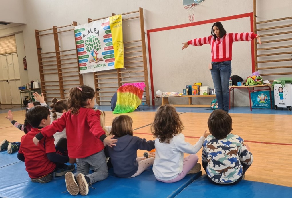 A las 11 disfrutamos con la sesión de La Granja, con cuentos más enfocados al alumnado de infantil, como Que viene el lobo y Cuquedo y un amor que da miedo, con el que nos pegó algún que otro susto, tanto a niños como a mayores. A continuación, tras una pausa para el café, nos deleitó con la sesión Cuentos ambulantes, enfocada al alumnado de primaria, con cuentos como Los tres cabritillos o La mariposa descolorida, escrito por ella misma e incluido en el libro Érase una vez…4 Estaciones de cuento.