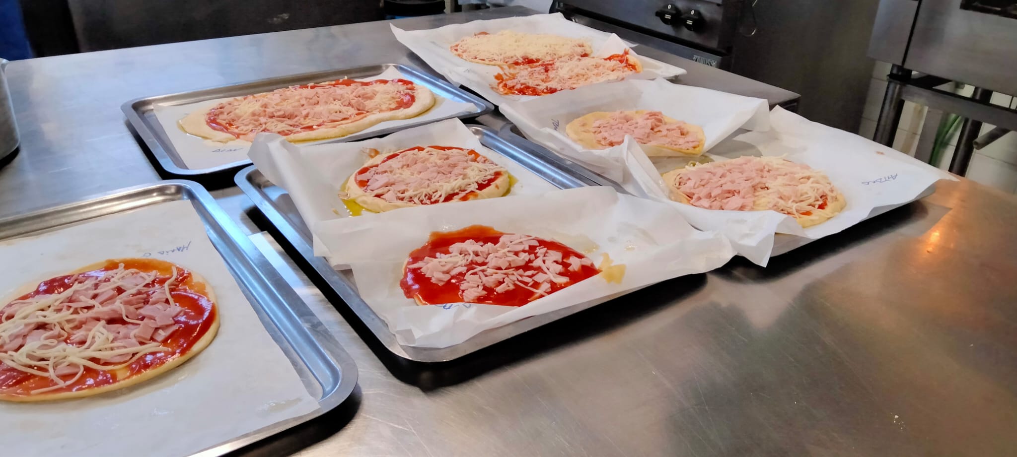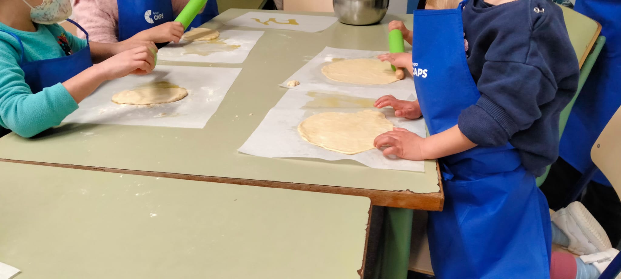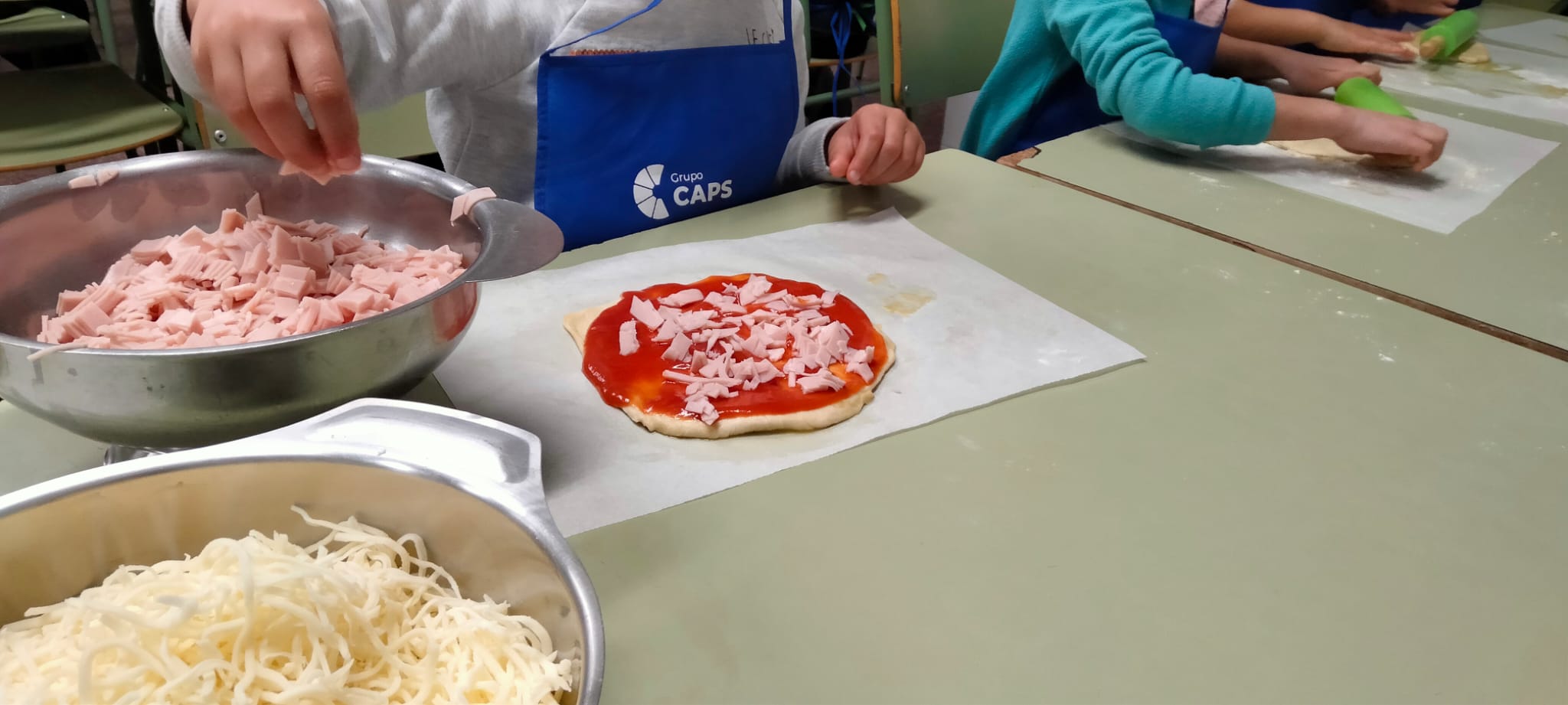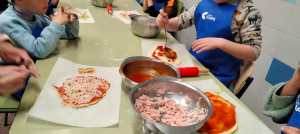 Los más pequeños de la casa tenían la masa de pizza preparada. Ellos la terminaron de amasar, la estiraron y la completaron con sus ingredientes favoritos