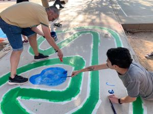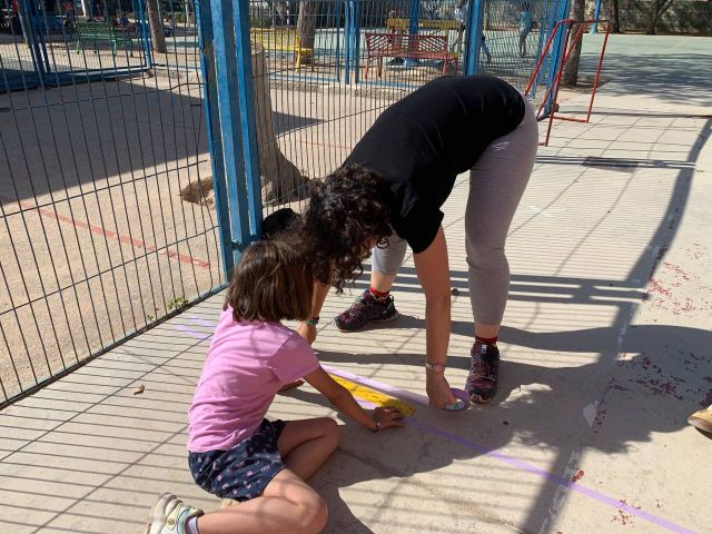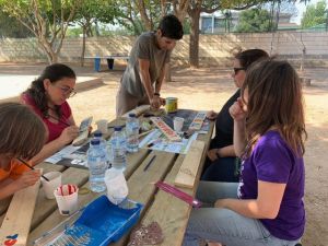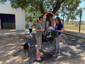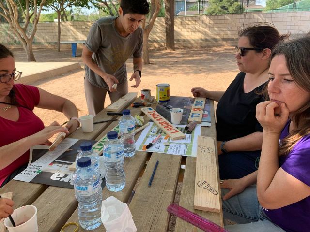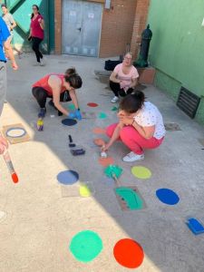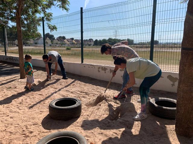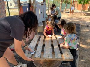 Después de la comida, la Comisión Mixta de Patios organizó a las/os asistentes en varios grupos de trabajo. La tarde fue muy fructífera ya que se crearon nuevas zonas de juego y se rehabilitaron algunas que ya estaban en malas condiciones después de tanto usarlas.
