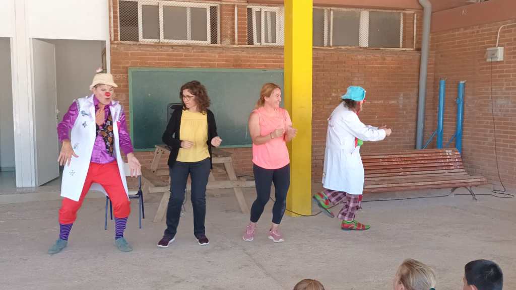 Las distintas clases pasaron por el escenario improvisado en el patio. Fue una mañana divertida y feliz donde abundaron las sonrisas y carcajadas del alumnado y las maestras.