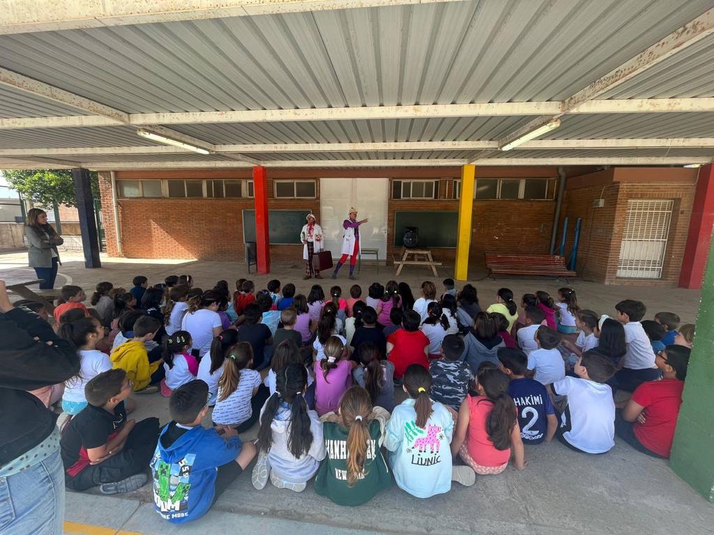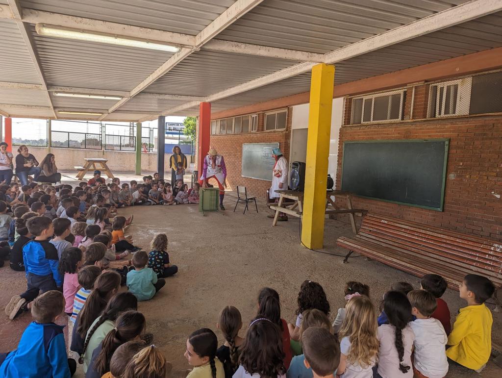 Las distintas clases pasaron por el escenario improvisado en el patio. Fue una mañana divertida y feliz donde abundaron las sonrisas y carcajadas del alumnado y las maestras.