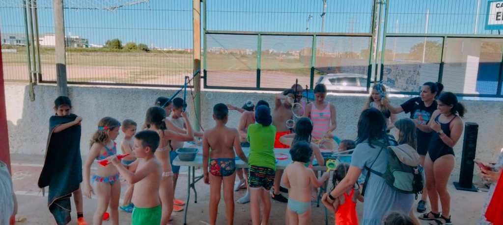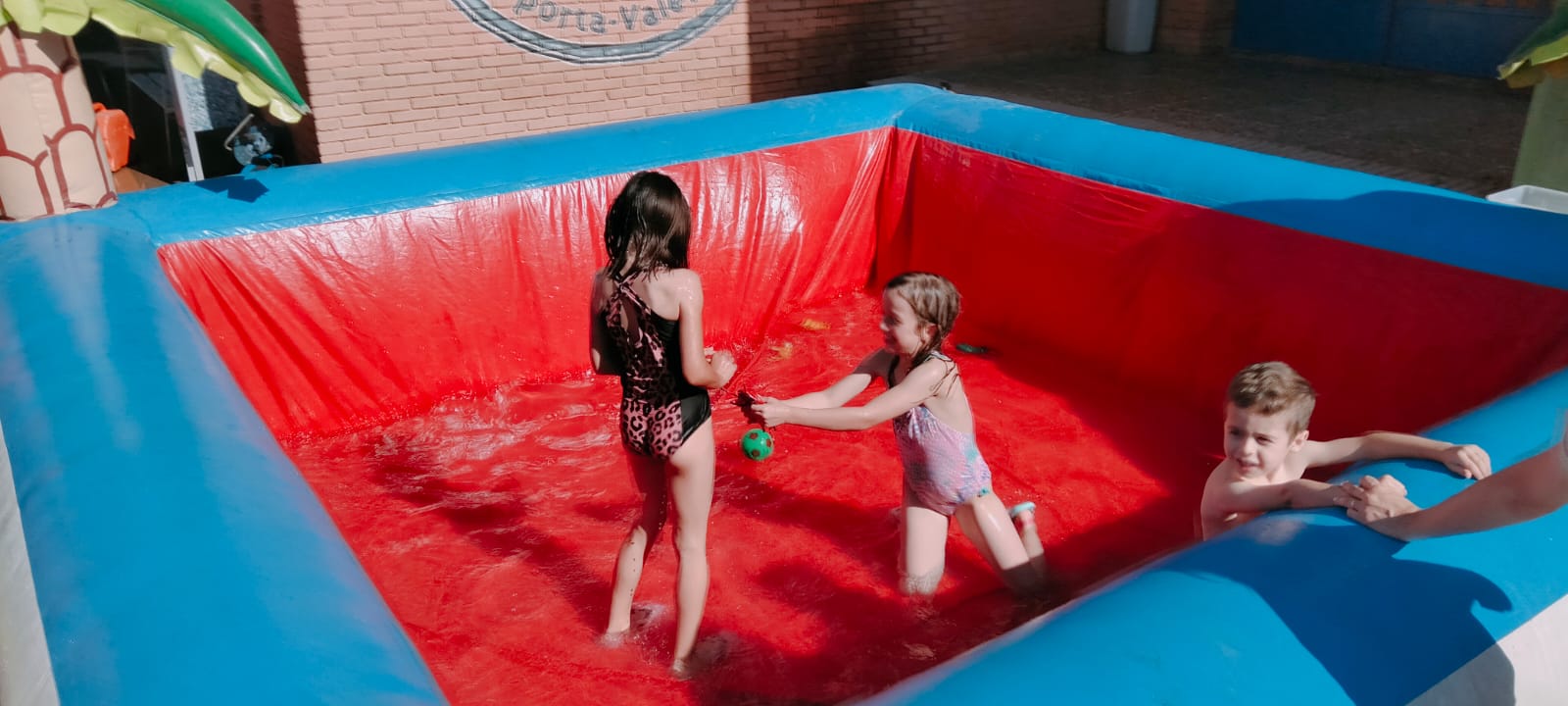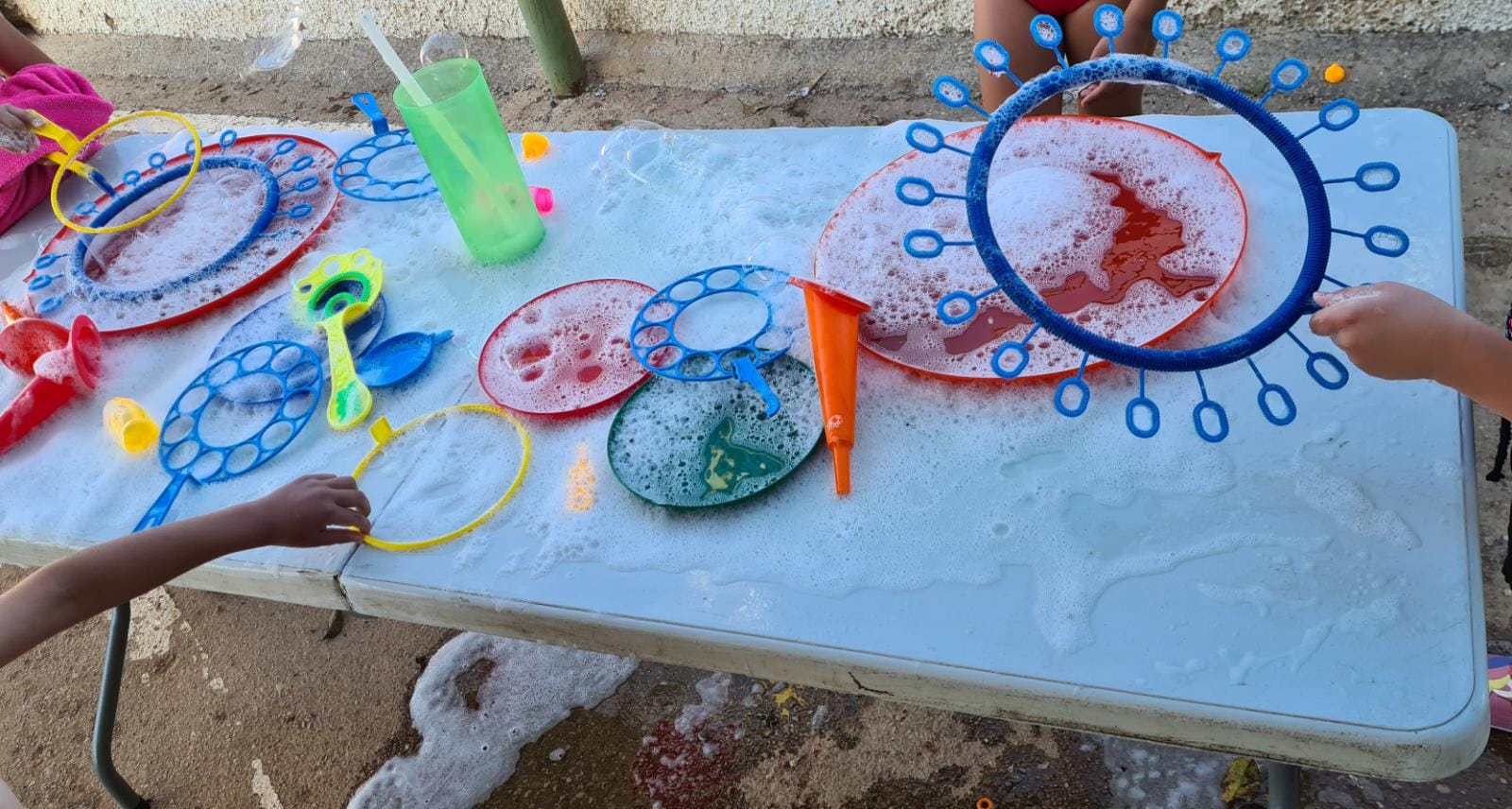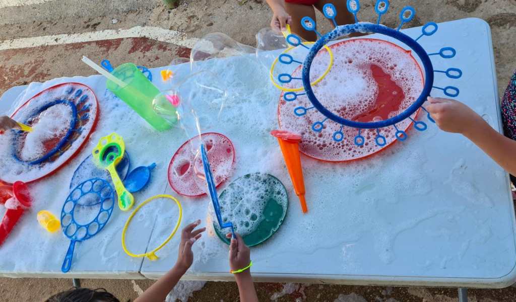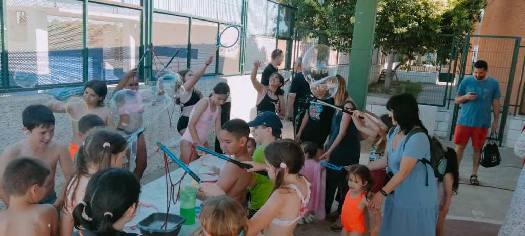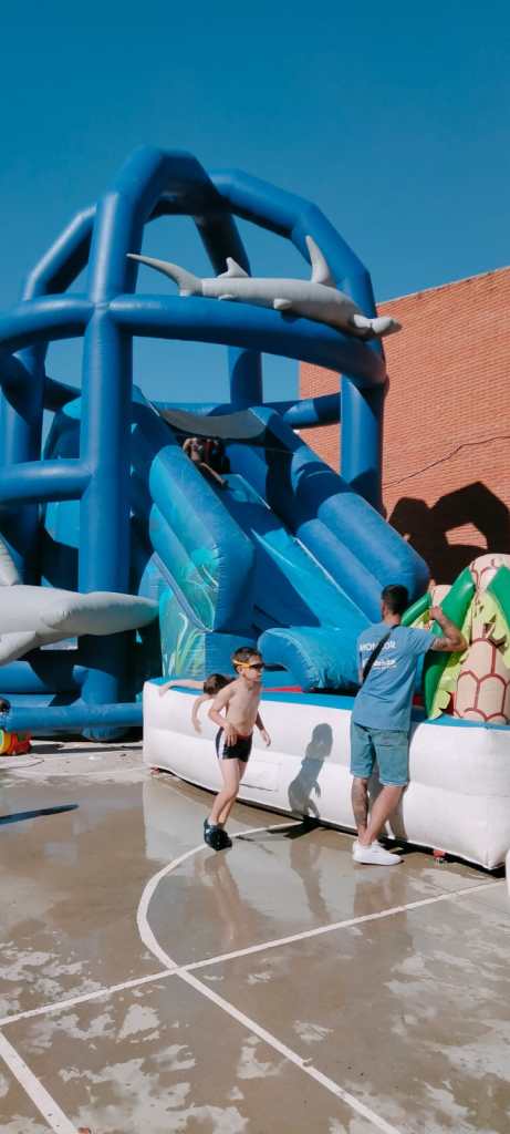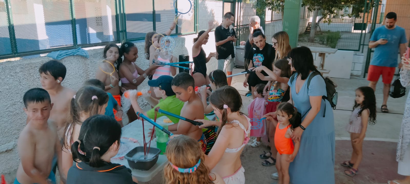 Empezamos la tarde con atracciones de agua y un taller de pompas de jabón, y acabamos con la cena de las familias, discomóvil y actuaciones de nuestras pequeñas estrellas.