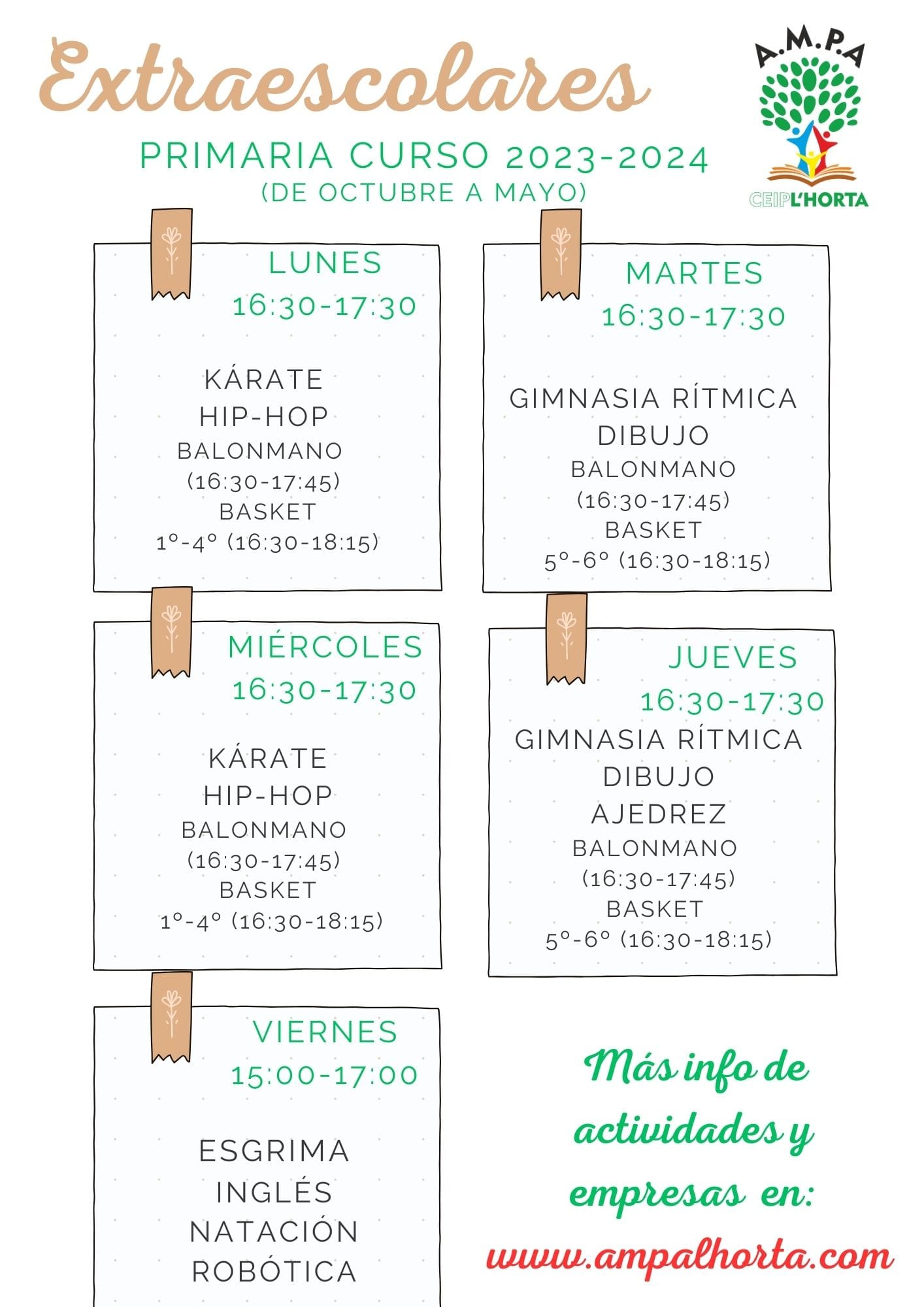 Para tramitar las bajas de las actividades extraescolares, hay que ponerse en contacto con la AMPA mediante Whatsapp (652423992) o correo (ampalhorta@hotmail.com) para tramitarla. Siempre hay que hacerlo antes del 25 del mes anterior a la baja.