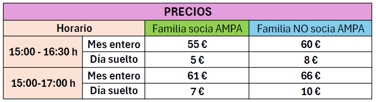 El 4 de septiembre finaliza el plazo para poder inscribirte. Después de ese plazo, consulta con la AMPA la disponibilidad.