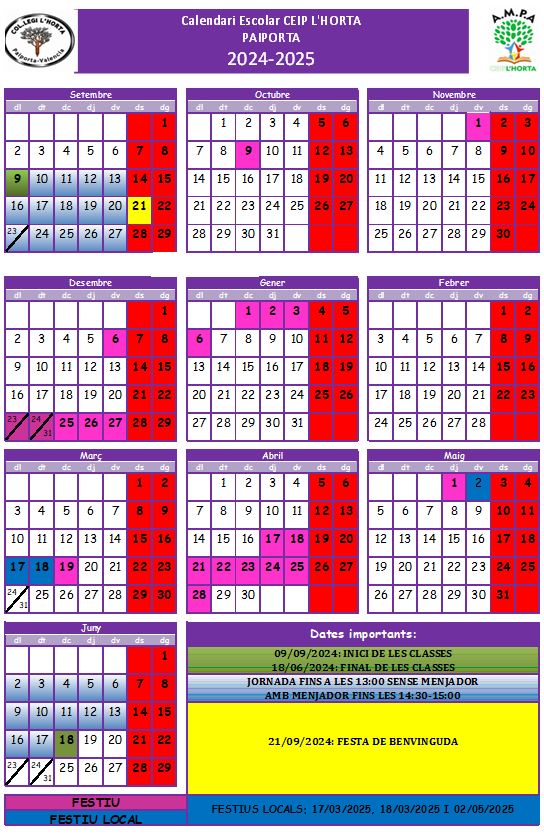 - Vacances de Pasqua // Vacaciones de Pascua: del 17/04/2025 al 28/04/2025 (inclosos // incluidos)