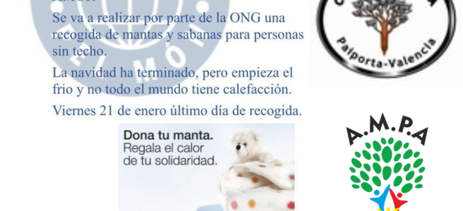 Desde el cole y la AMPA nos hemos querido unir a la campaña de recogida de prendas de abrigo, mantas y sábanas con la ONG "Bombers pel món". Si estás interesada/o en colaborar, entrega a tu tutor/a la prenda para que nos la haga llegar y poder entregar a la ONG. El último día de … Sigue leyendo Campaña de recogida de ropa de abrigo con «Bombers pel món»