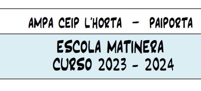 En colaboración con el centro y FORCUIN, la AMPA os presenta el servicio de Escola Matinera para el próximo curso. Os hacemos llegar ya la información de la actividad para recordaros que estará en marcha desde el primer día de clase, el 11 de septiembre.