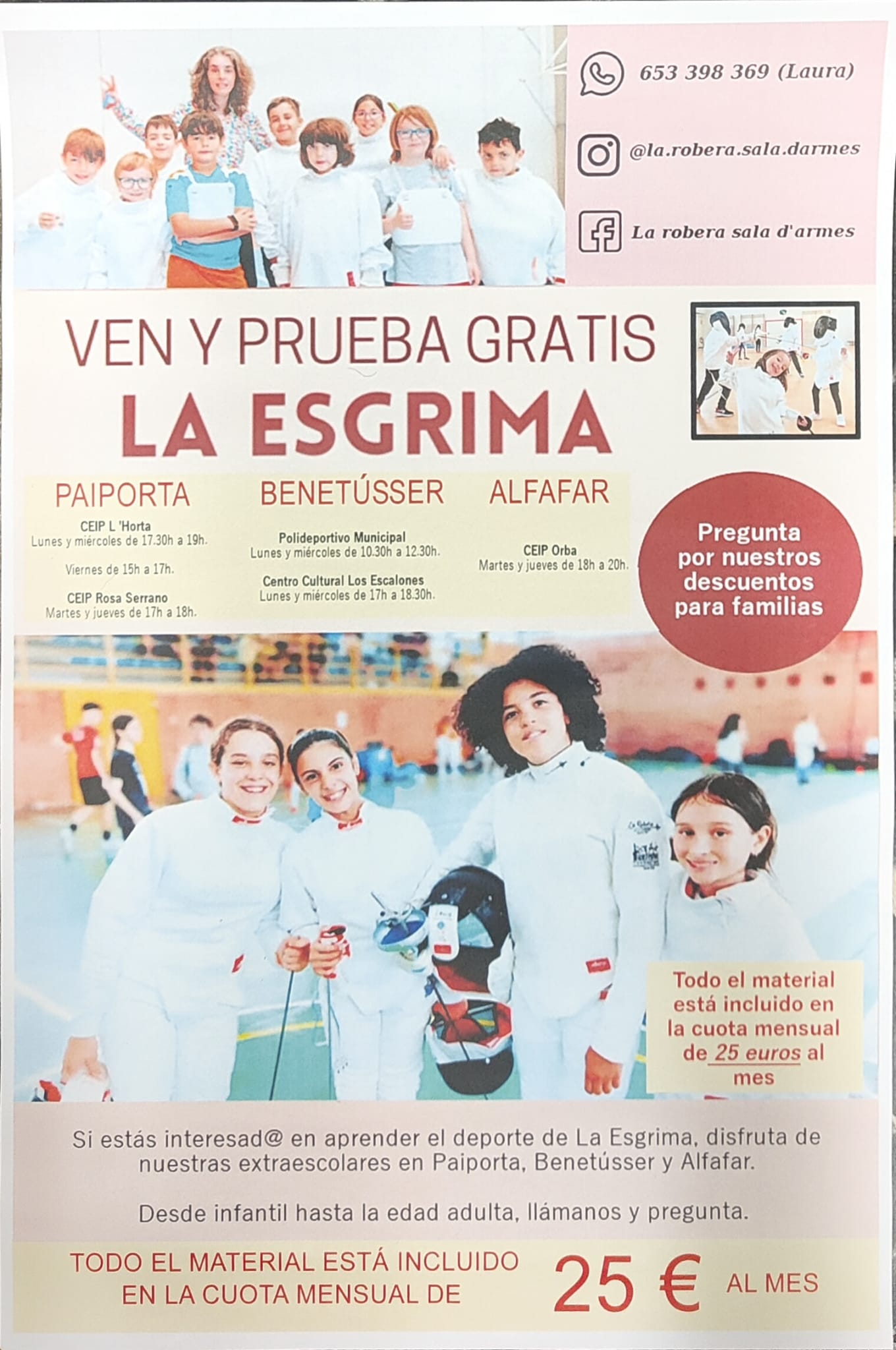 Además, La Robera Sala d’Armes participa en el programa exclusivo de la Fundación Trinidad Alfonso por el cual las familias pueden recibir una beca individual para pagar las cuotas mensuales y la licencia federativa, si se cumple alguno de los supuestos.