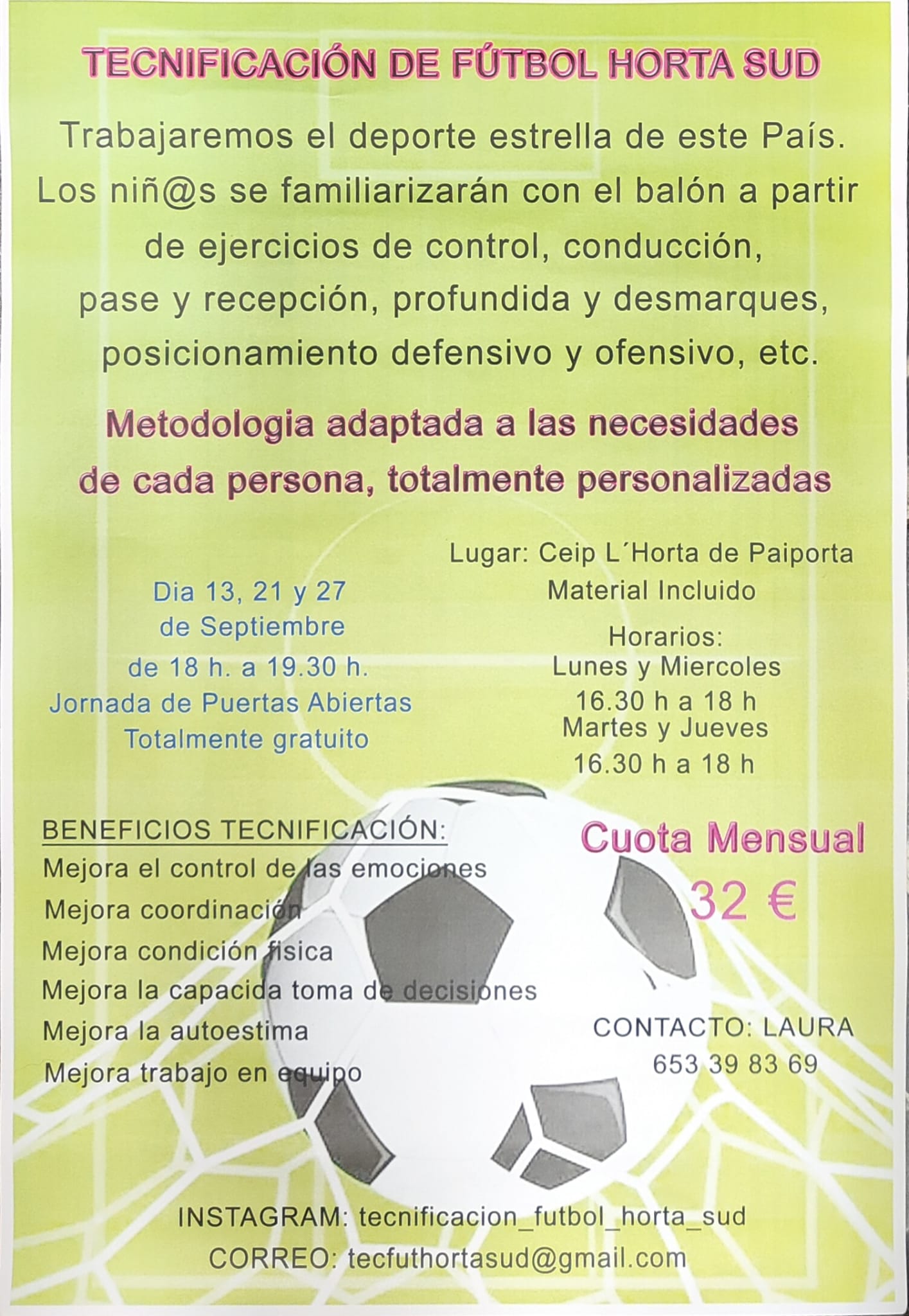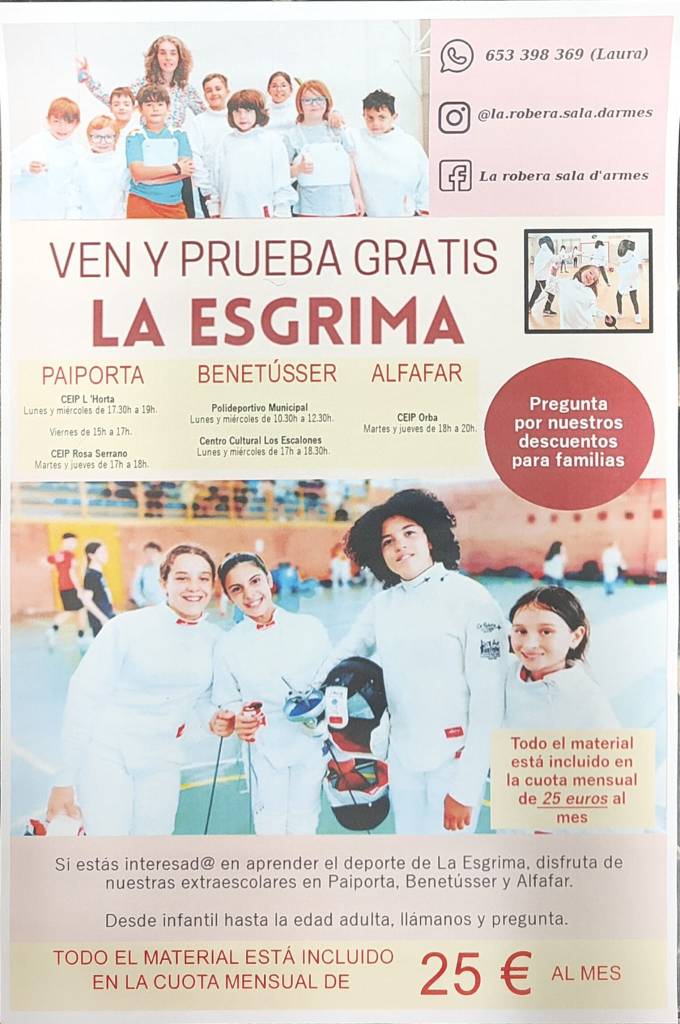 Para el nuevo curso escolar 24-25, desde el Club de Esgrima la Robera queremos comunicar a las familias del centro escolar que la actividad de Tecnificación de fútbol Horta Sud como extraescolar ya está disponible para realizar la matricula de este curso.